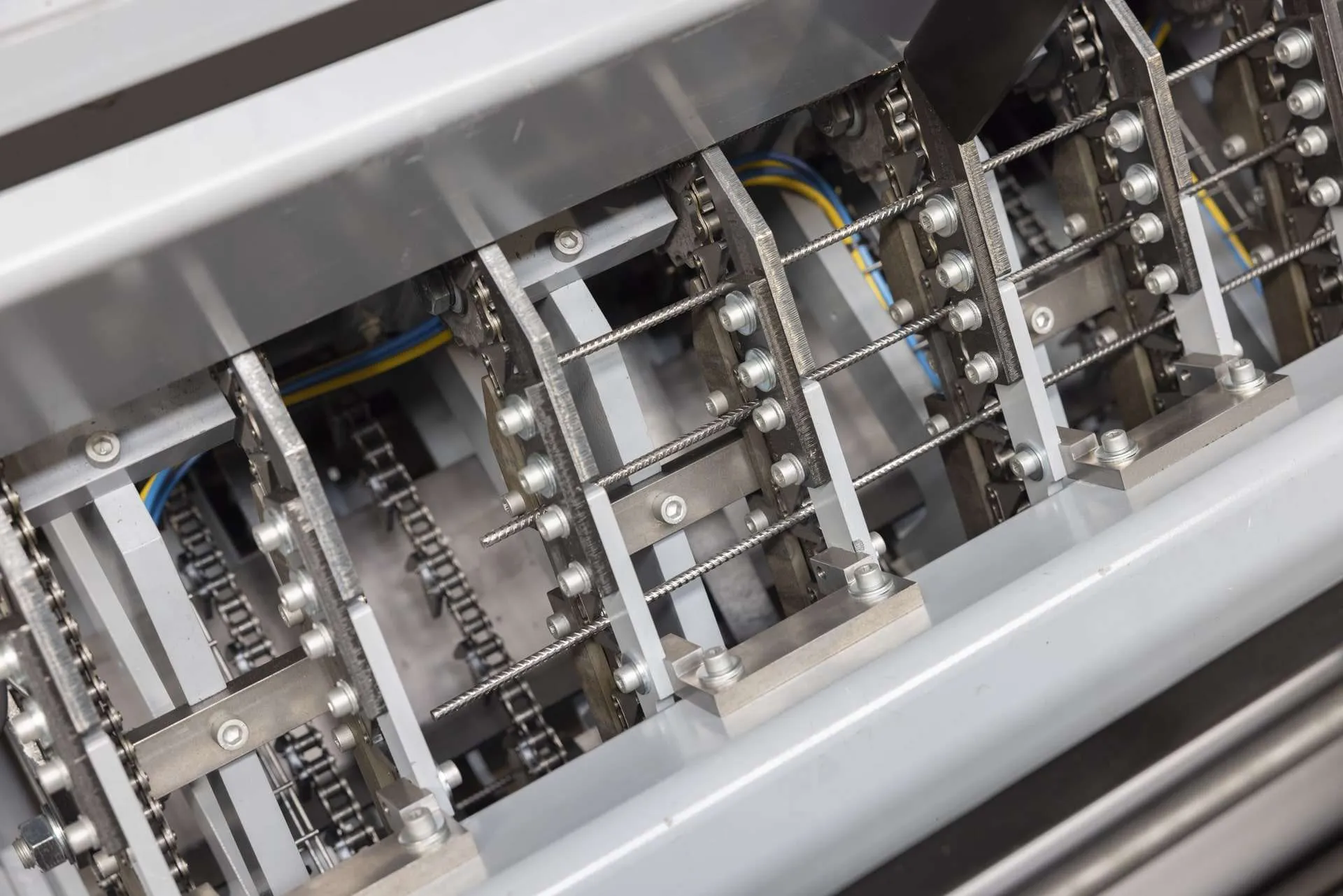 Another option is semi-automatic feeding, the operator places rods on the feeding table and the rods are fed by pneumatic grippers into the welding bridge.