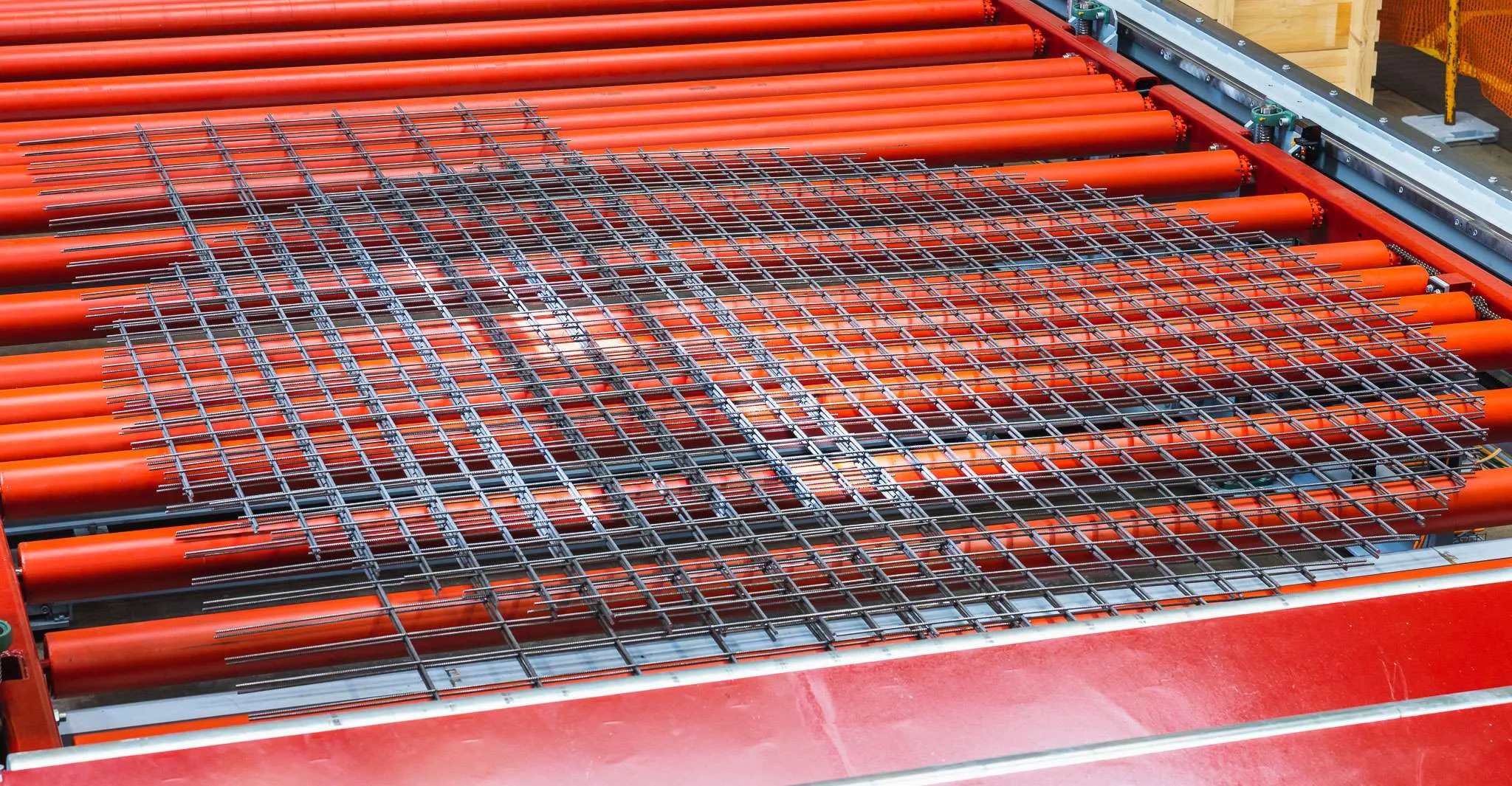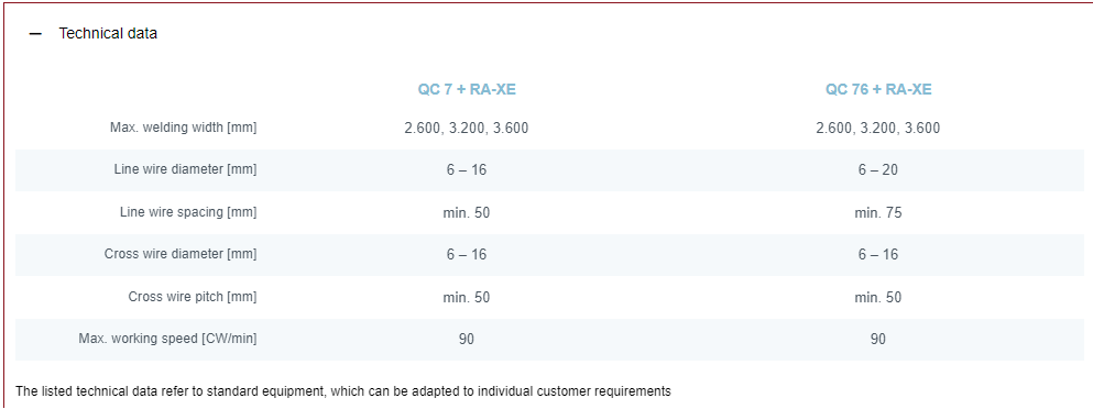 Special configuration of a mesh welding machine combined with Raxe straightening and cutting machine.