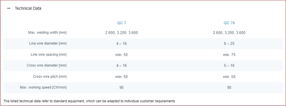 Massive production line for the production of standard and engineering mesh up to 25 mm diameter from rods